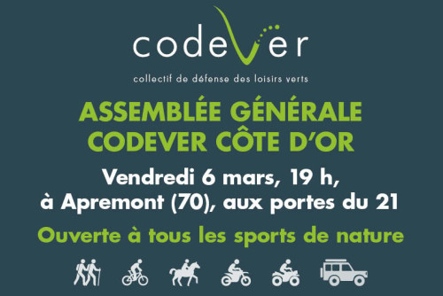 Votre mobilisation fait la force du Codever ! Nous avons donc le plaisir de vous inviter à l’Assemblée Générale du Codever Côte‑d’Or, qui se tiendra cette année à Apremont (70), commune limitrophe du 21, afin de rassembler l’ensemble des passionnés de nos territoires voisins.